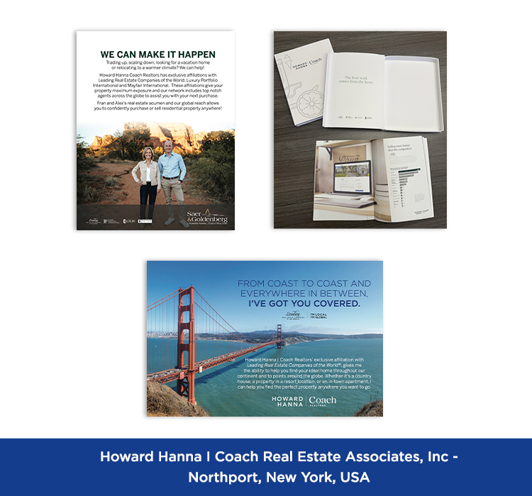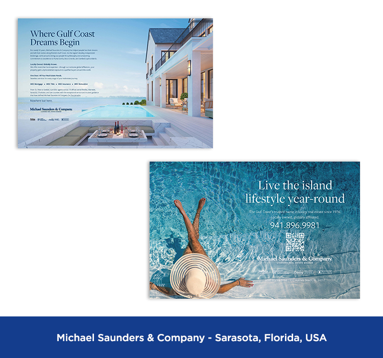 These are examples of advertisements appearing in external media (magazines, newspapers, billboards, and signage); consumer-facing materials (listing presentations, brochures, flyers, postcards, newsletters, email campaigns, and web pages) and videos for internal or consumer-facing communications (corporate branding videos, video blogs, contest videos, interviews, video newsletters).