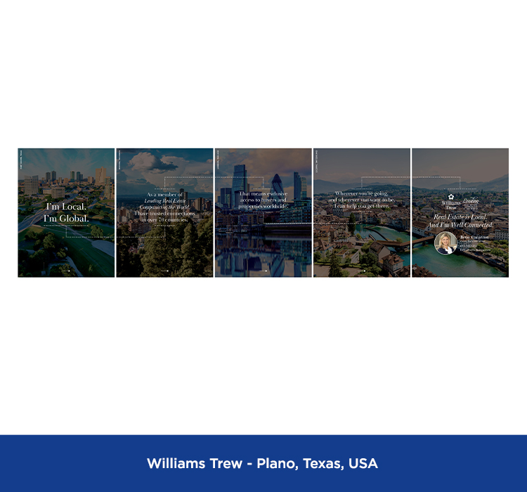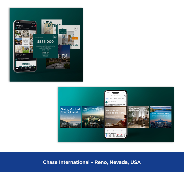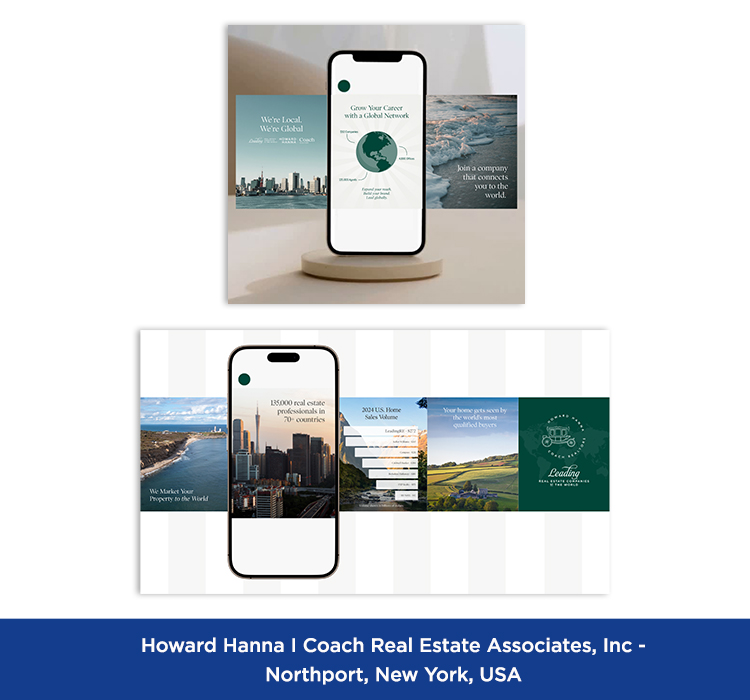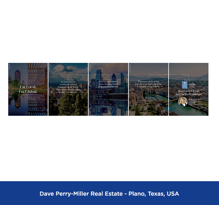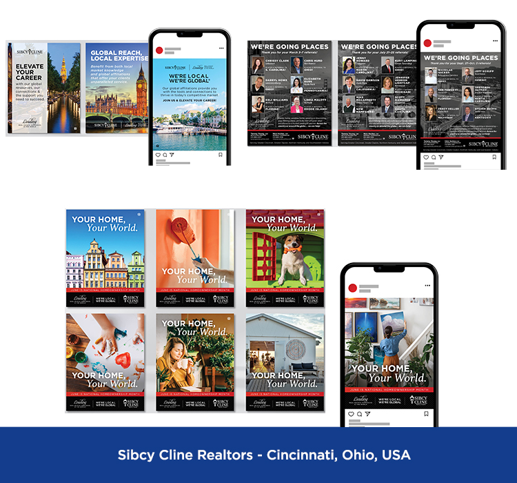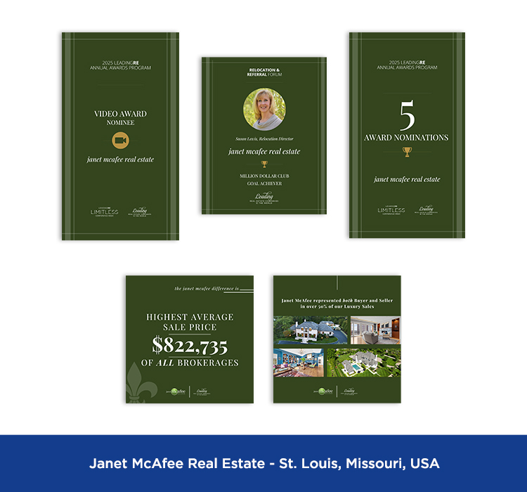 These are samples of marketing materials featuring the LeadingRE brand that appear on social media platforms including Facebook, Instagram, LinkedIn, X, YouTube, TikTok, Pinterest, etc.